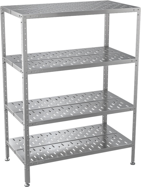 Перфорированные стеллажи используются для размещения продуктов, посуды, кухонного инвентаря небольшой массы с максимально допустимой нагрузкой на каждую полку не более 80 кг. Наличие перфорации (отверстий) в полках обеспечивает улучшенную циркуляцию воздуха, позволяет предотвратить риск образования плесени, повышает сроки хранения. Оборудование предназначено для эксплуатации в рабочих зонах заведений общепита. Бортики исключают случайное падение продуктов на пол. Стандартное количество полок – 4 штуки. Число ярусов может меняться в зависимости от сценария использования. Так, если мебель предназначена для размещения высоких кастрюль и бутылей, оптимальным решением являются модели с 3 ярусами. Некоторые варианты имеют до 10 полок.