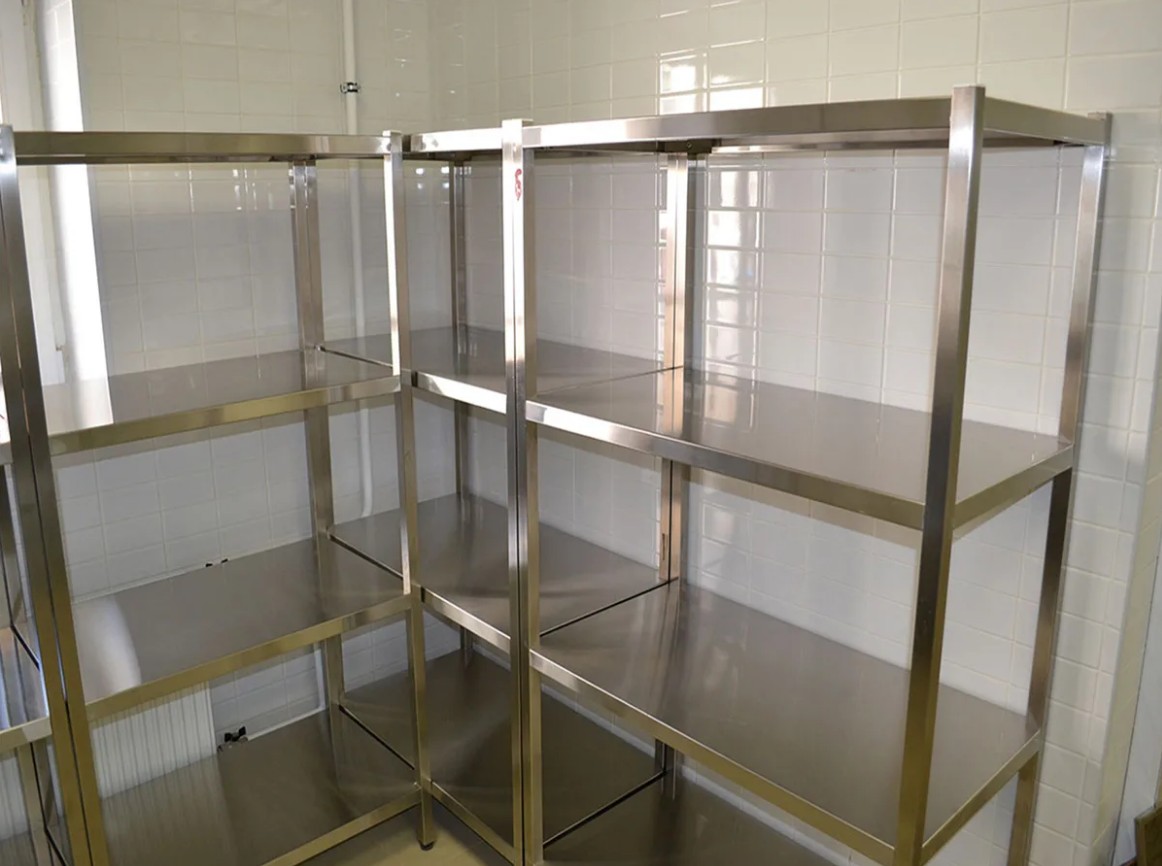 Цельно-металлические стеллажи нержавейка для пищеблока